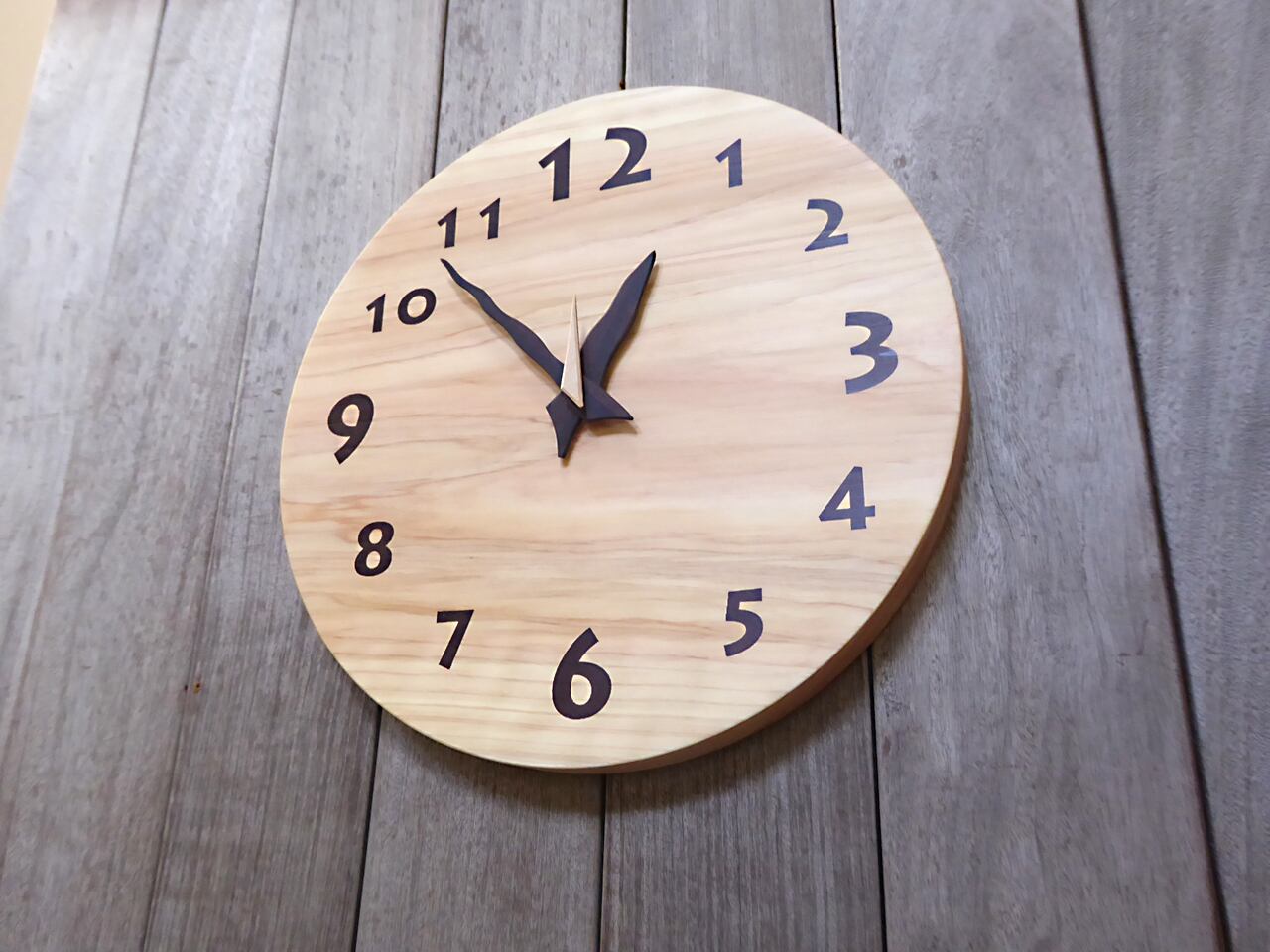 静岡県産のヒノキ材を使った木の時計です。径30センチ。