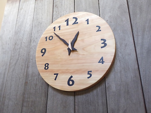 静岡県産のヒノキ材を使った木の時計です。径30センチ。