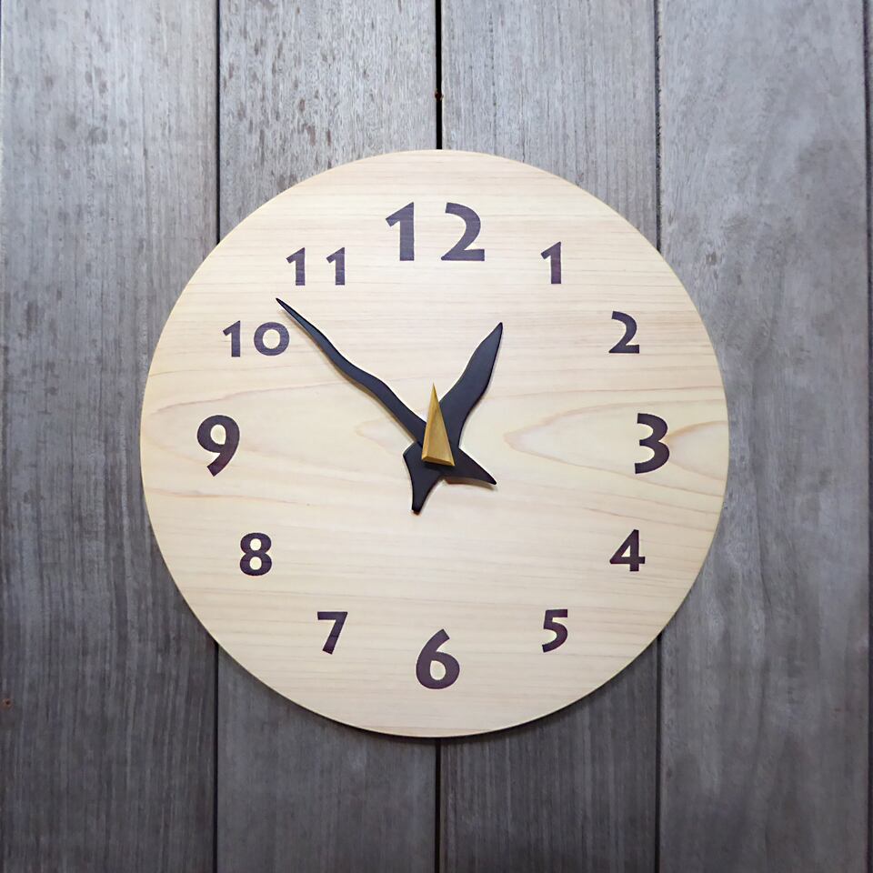 ヒノキはすっきりと爽やかな木目で好まれます。黒い針と茶色の文字盤で可愛らしい雰囲気です。